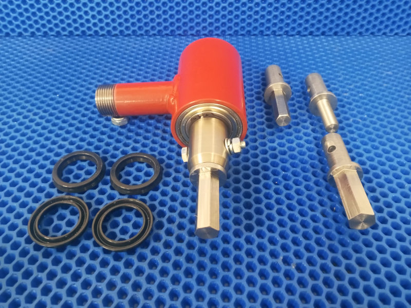 - Вертлюг имеет возможность присоединения к низкооборотистым дрелям через шестигранник на 14, 16, или 19 мм, либо к миксеру через шпильку М14, или к мотобуру через отверстие в валу на ø20 мм